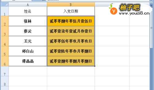 5按”确定“后,我们看到,文本变成了大写日期格式“。