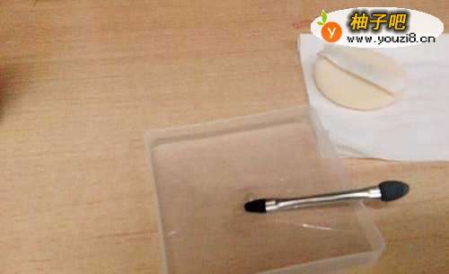 2用化妆水清分别洗眼影棒、粉扑和粉刷,洗掉附在工具上的残粉