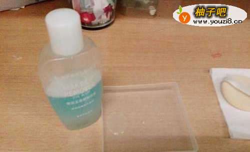 我们需要将化妆水摇晃一下,然后到一点在准备的小碟子或瓶盖中。