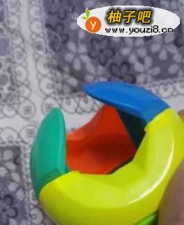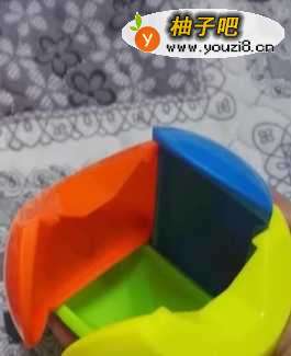 4前三步弄完以后,发现形成一个凸起的直条形状,这时候球体中必须有一个洞来弥补,正好剩余积木中有一个绿色的,可以嵌入。