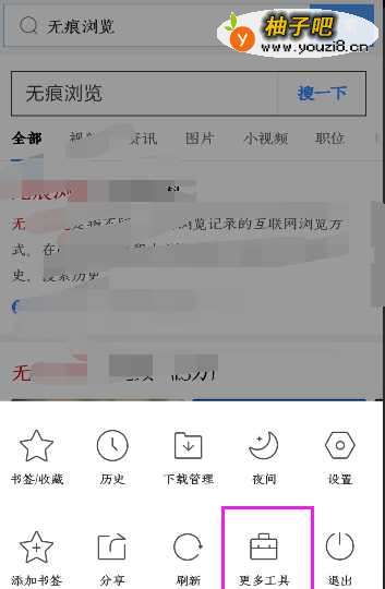 6开到更多工具的选项组合页面,你将会看到有个无痕浏览的选项,点击就可以实现了,如图所示