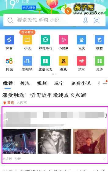 3然后,输入你要打开网页名称,来到你想要打开的网页,点击下方的三的图标,如图所示