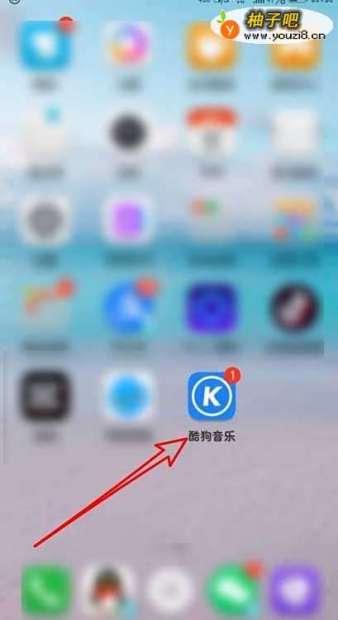解锁手机屏幕后,点击酷狗音乐的图标。