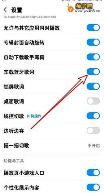 4接下来在打开的页面找到车载蓝牙歌词的设置项。