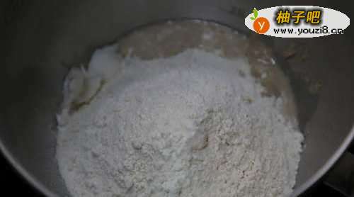 面粉猪油酵母放进面包桶里,没有厨师机的手揉吧这个很好操作的,不像面包要到手套膜馒头包子揉面要记住的是面团切记不要太湿太软不要一次性全部倒入液体我也是一边打面分次加入的而且每家的面粉吸水量也不一样。