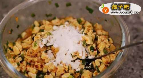 10搅拌均匀之后加入少许盐,鸡粉糖然后一勺淀粉。