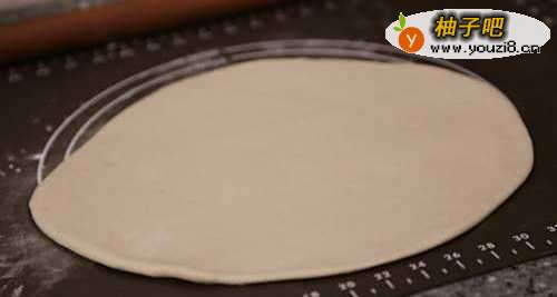 16好了以后用手搓圆,再按扁擀面杖擀成长方形,要记住的是面片擀的时候下面也要撒粉,不然等一一下你想卷起来那比登天还难,好了以后上面刷少许油和少许水都可以这样才能更紧的黏在一起。