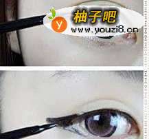 先用眼线笔画出眼部的线条,沿着睫毛的根部开始画出眼线,眼尾部分需要适当地向上挑,会让眼睛更加有魅力。之后可以用眼线液加深眼线的颜色。下眼线部分只需要画出眼尾部分就可以了,形成一个小三角区域,然后填充颜色。