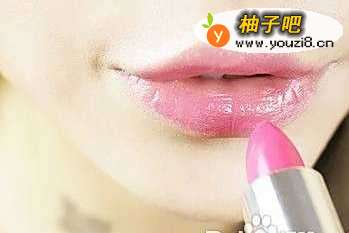 选择有光泽感的桃红色唇膏,把它均匀地涂抹在嘴唇上,为唇部添上好看的色彩。
