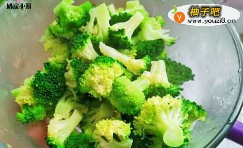 6西兰花在焯水后放入凉水中过凉,再捞出沥干水备用。有许多人没有注意到这一点,所以西兰花炒出来不脆。
