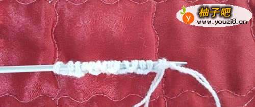 5向这样绕到我们需要的针数,开始织,正针照常织正针,反针挑下不织,线从前面带过,循环织两行。
