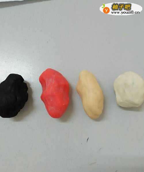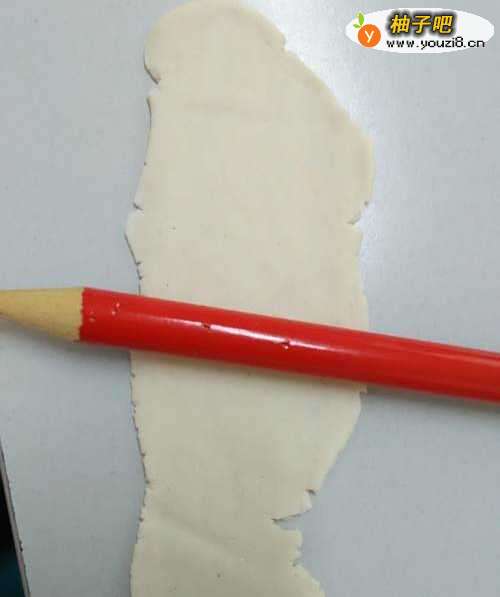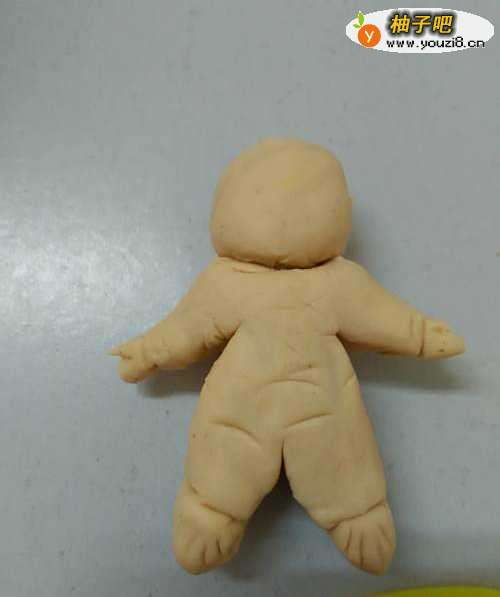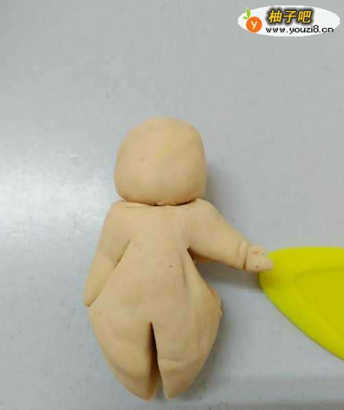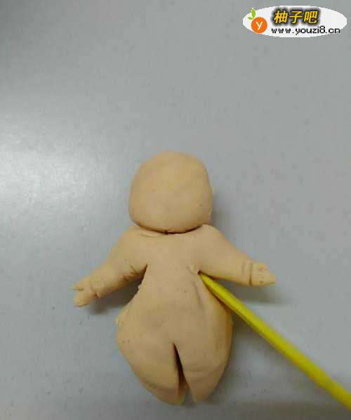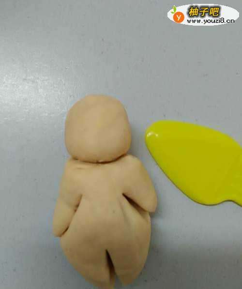 2把肉色的搓成圆条,然后用塑料小刀大概分出头和四肢的比例。