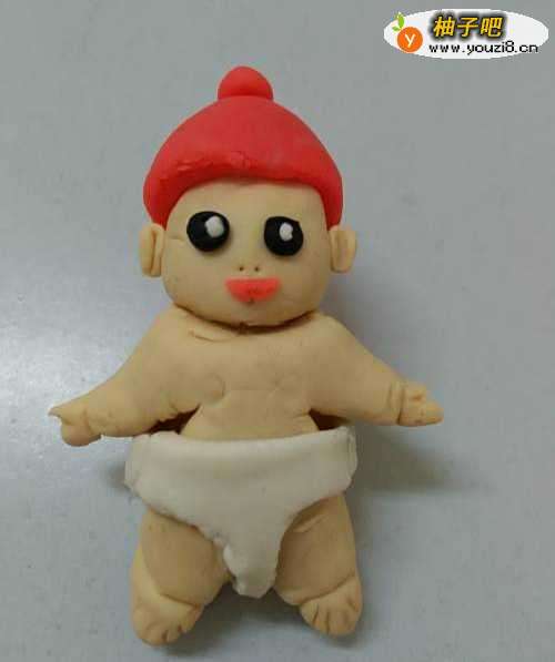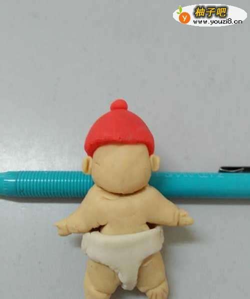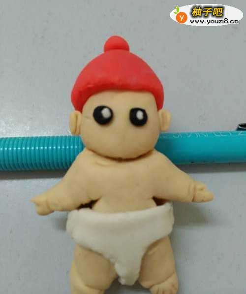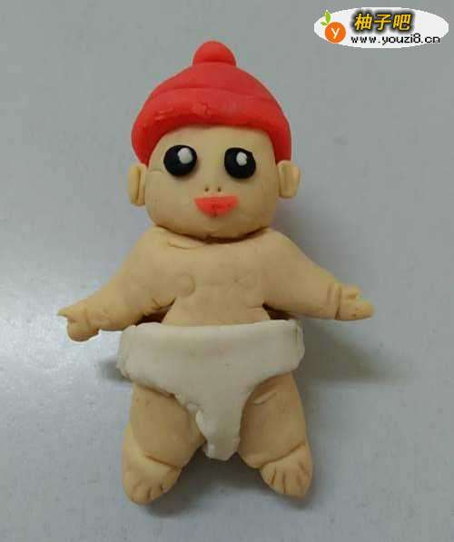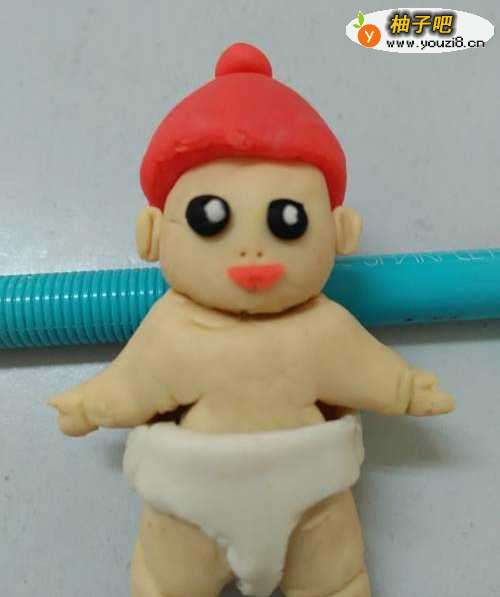 19最后用小刀在红帽子边缘划一道,更好看。到此,一个胖乎乎的软陶小宝宝就做好了。