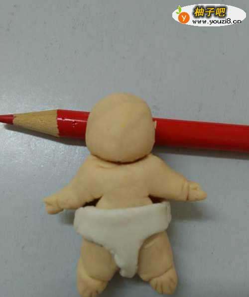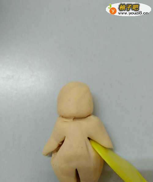 4因为小宝宝胖胖的,没有脖子,所以直接做胳膊,用小刀把胳膊往上抬,然后刻出小手。