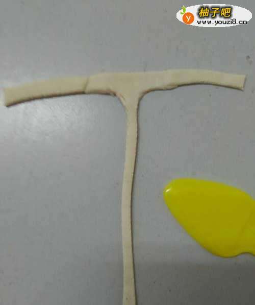 9用小刀刻出个丁字形。当作小宝宝的纸尿裤。