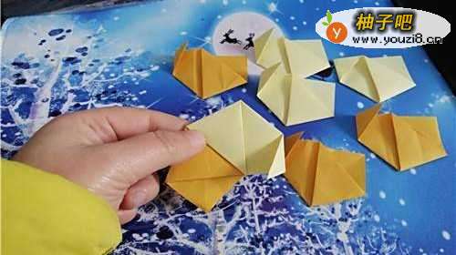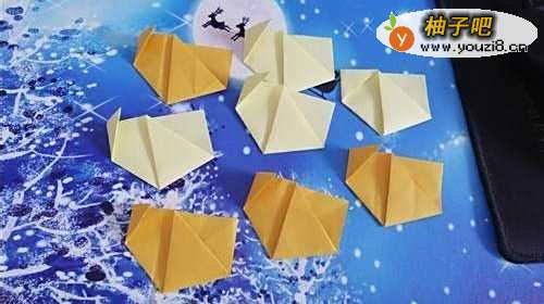 4其他的彩纸按照上边的步骤依次折好,如下图的样子。