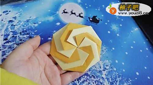 今天我们来折一个好看的茶杯垫,从它的外观看有点像是旋转的棒棒糖。它的制作过程很简单,是有几张彩纸折好后组合而成的,希望大家会喜欢此次的折纸。