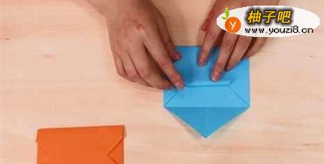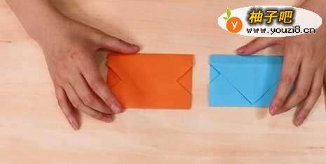 4最后将上部的三角形顶部对折下面的边线,简单的信封就折好了。