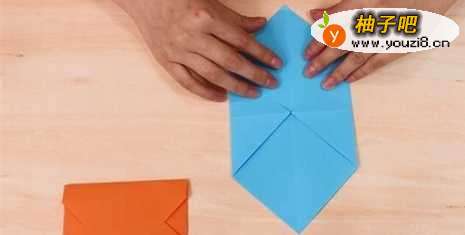 3剩下的两个角多往下折一点,再将三角形的头部往里稍折一点。