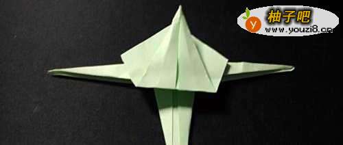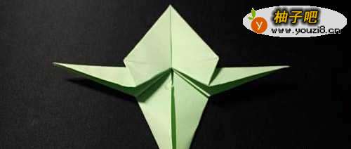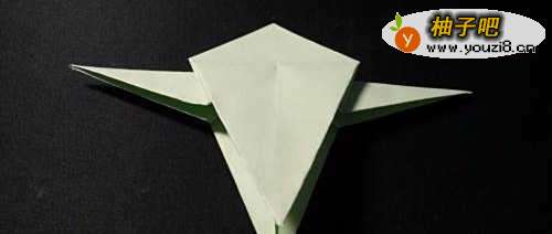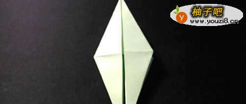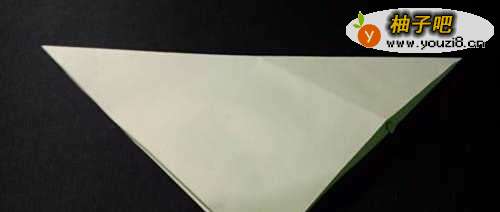 8将上面侧的折叠部分再次打开,将下方垂直的三角形向上翻折,三角形的顶尖需要超过整个图形的最顶端。