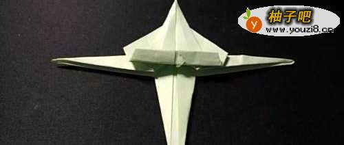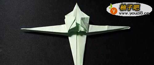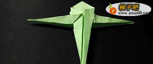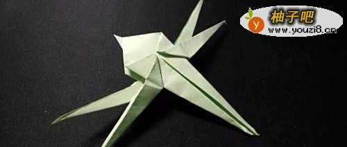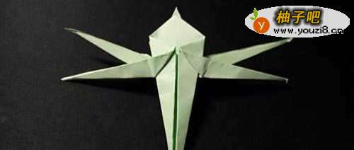 11将整个图形水平翻转,刚才折叠部分为蜻蜓的腹部。把剪开的翅膀上下两层错开放置,那么蜻蜓造型就完成了。