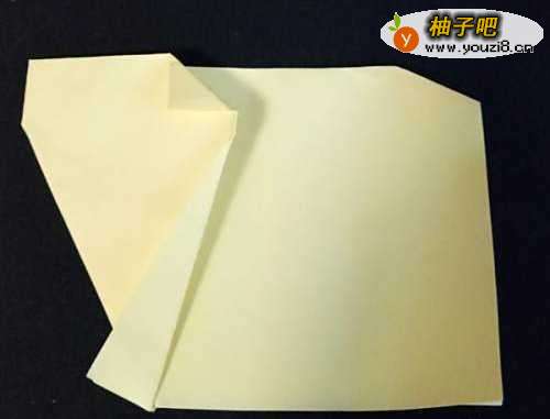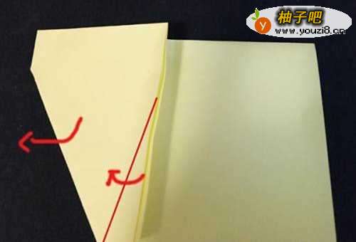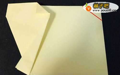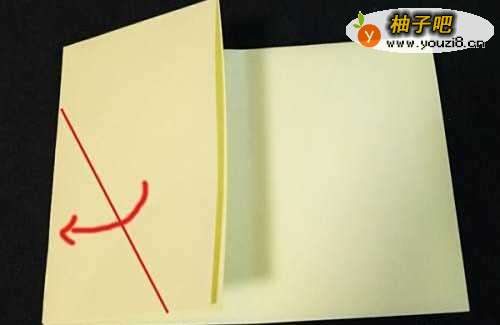 首先,选择一张正方形的彩纸,颜色最好是浅黄色或者白色、灰色。按着下图所示,将正方形的彩纸,沿着中关光线位置对折起来。