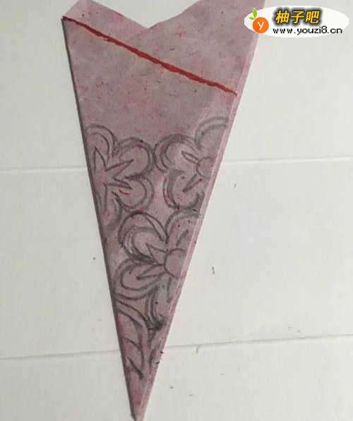 6第六步 剪完外围多余的彩纸之后 再剪里面细致的地方 和其它镂空的部分 剪完之后取开铺平就行了