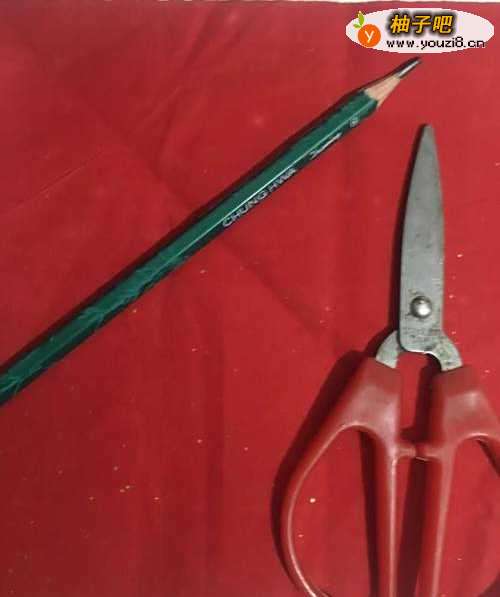 5第五步 画完六瓣圆角花的草图轮廓之后 拿起手工剪刀开始裁剪 先剪去图案外围多余的彩纸