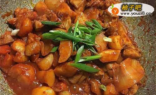 5加入1.5米杯的清水,翻匀盖上锅盖将马铃薯闷软。
