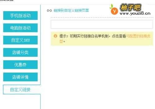 7最后选择自定义链接,就是你优惠券的链接加上去点保存就可以了。