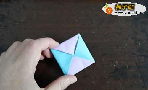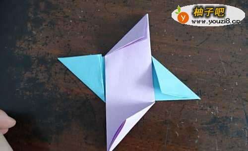 6把上侧的角向下折,并且插进折纸里,下面是完成图。