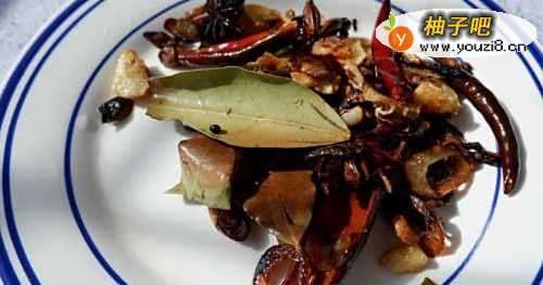 5再放入香叶辣椒翻炒