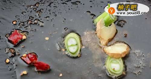 9油锅加入葱姜辣椒段爆炒
