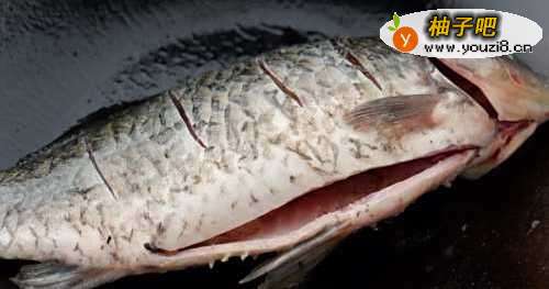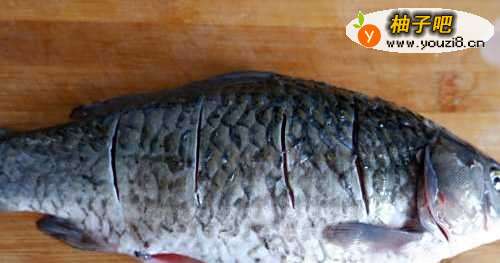 3鱼的背部开上几刀,为了更好入味儿