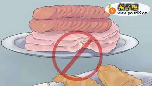 77.哪些不该吃。有些食品对肝脏有害,会增加肝脏负担,影响它的正常运作。这些食物包括:加工食品、高油脂食品如腌制的肉类(香肠、腌牛肉)、油炸食品、人造黄油和氢化油,以及含有人造色素和人造调味剂的食物。