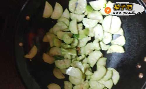 3在加油,放蒜瓣辣椒,加入切好的丝瓜片,大火炒至丝瓜半熟,再将鸡蛋加入继续炒,炒至七成熟加盐,加水,小火煮至熟就可以出锅了。