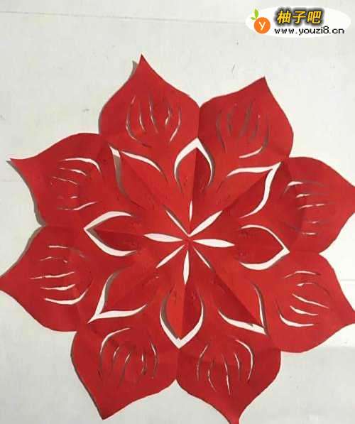 6第六步 剪完外围之后 再剪去花冠里面涂实的部分 还有花瓣的纹缕部分 剪完之后取开铺平就行了