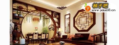 2装修中式风格,要在室内装有中式元素的造型和家具,如下图所示,餐厅和过厅之间的隔断采用中式镂空雕刻圆门及其它中式元素的呼应,很美观。