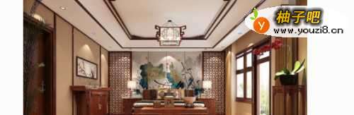 4装修中式风格,还可以从天花板的装修来营造中式风格,如下图所示,将天花板灯饰周边装成带边框的形式,与灯饰和家具相匹配,也是非常漂亮的新中式风格。