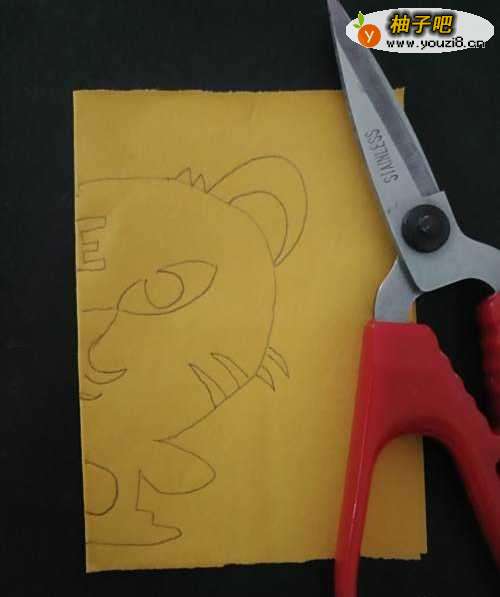 6第六步,用剪刀把画好的老虎裁剪出来。