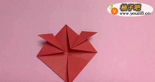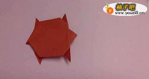 5单层的角是尾巴,内收成小尾巴样。另一角内折,再反折回,成曲线样是头部。
