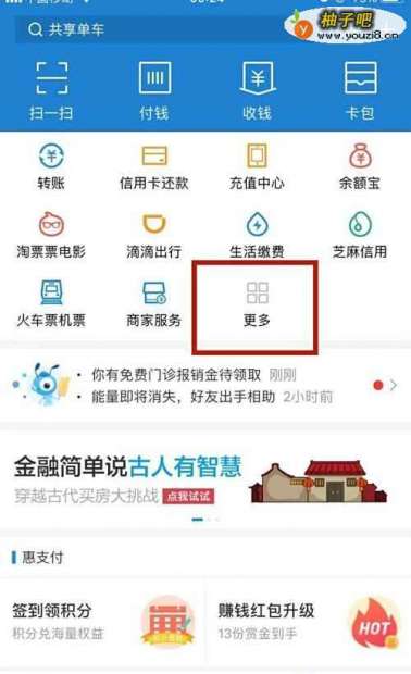 如图所示,在我们的手机桌面上找到支付宝并点击它