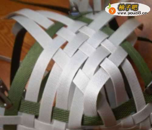 4然后开始收口,将多余的长条都塞进篮子外端.