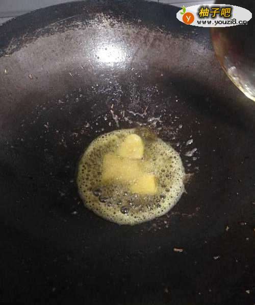 2开火,倒油,放入切好的生姜片,翻炒出香味