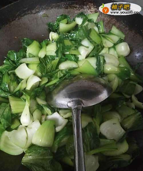 5倒入切好的青菜,翻炒