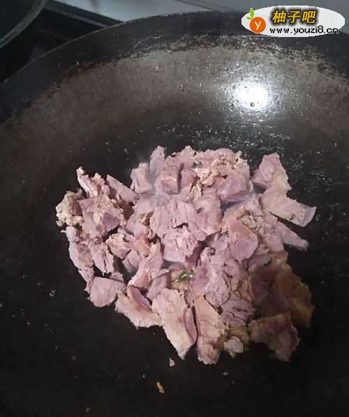 3倒入切好的牛肉,翻炒