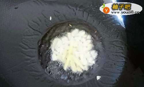 4:热锅倒油,小火煸香姜丝和蒜末。