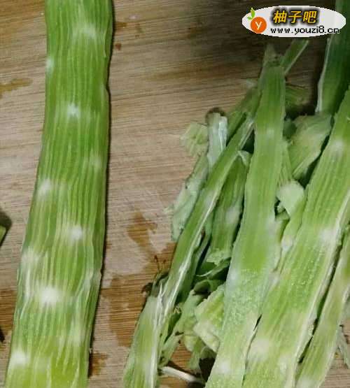 准备食材:莴笋去叶削皮,莴笋皮厚、硬,去的时候要注意伤手。