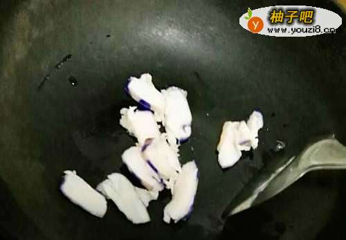 7根据情况放一点油,肉片透明后,加入葱姜爆香。