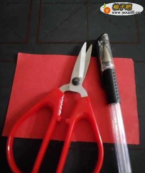 第一步,先把需要食用的工具准备出来,需要用到一张纸,一支笔以及一把剪刀。